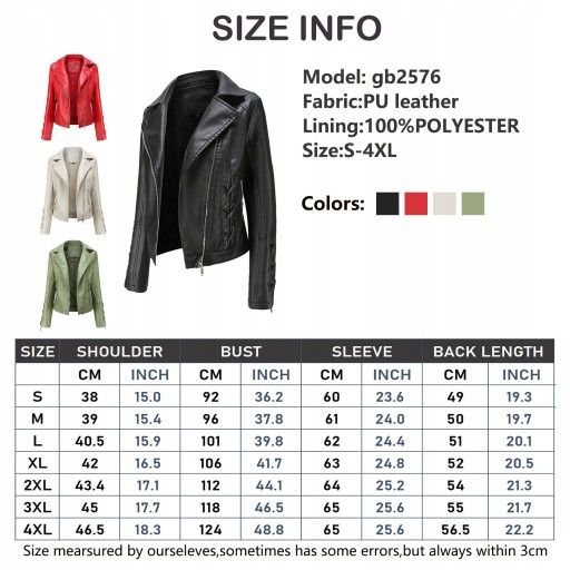 Śliczna damska kurtka ze skóry ekologicznej. Wykonana z wysokiej jakości miękkiej półmatowej ekoskóry - doskonała imitacja naturalnej skóry. Cała kurteczka na podszewce zapinana na solidny metalowy zamek. Kurteczka taliowana ładnie podkreśla sylwetkę.