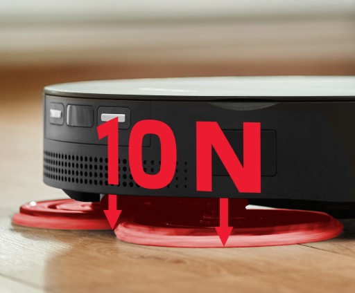 ✅ R10 Ultra - definiuje na nowo funkcję mopowania w robotach sprzątających. Zapomnij o plamach czy zaschniętych zabrudzeniach. Dwa innowacyjne, obrotowe mopy w R10 domyją je wszystkie przy użyciu skutecznego płynu do podłóg. Ściereczki są dociskane do mytej podłogi z siłą 10 N, co w połączeniu z dynamicznym, okrężnym ruchem mopów o prędkości 180 obrotów na minutę umożliwia dokładne usuwanie zabrudzeń.