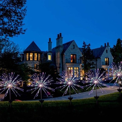 Słoneczne światło fajerwerków ma dwa tryby świecenia. Gdy przełącznik jest ustawiony na stronę ON, jest to tryb migania, przełącznik znajduje się w stanie OFF w środkowej pozycji, a pozycja OFF to tryb stałego światła. To kreatywny prezent dla przyjaciół lub sąsiadów na Boże Narodzenie, Halloween i Święto Dziękczynienia. To zewnętrzne oświetlenie dekoracyjne oświetli tarasy, klomby, ogrody, podwórka, ogrodzenia, chodniki i ścieżki itp.