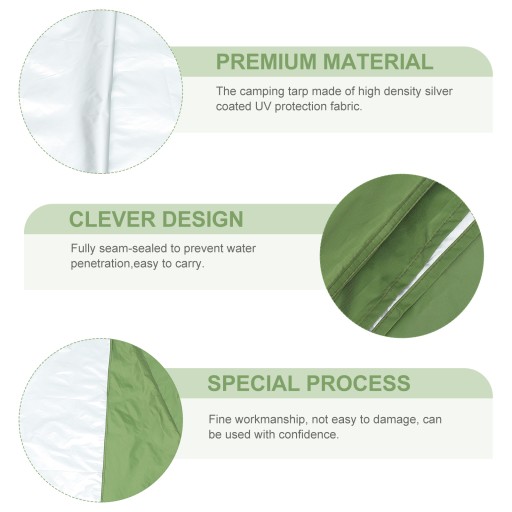 ✅Całkowicie uszczelnione szwy, aby zapobiec przedostawaniu się wody. Nasza plandeka kempingowa jest również pokryta od wewnątrz srebrem, aby skutecznie blokować promienie ultrafioletowe i chronić skórę przed słońcem. Nadaje się do zabawy na plaży, biwakowania na świeżym powietrzu, wypoczynku w parku i rodzinnego dziedzińca.