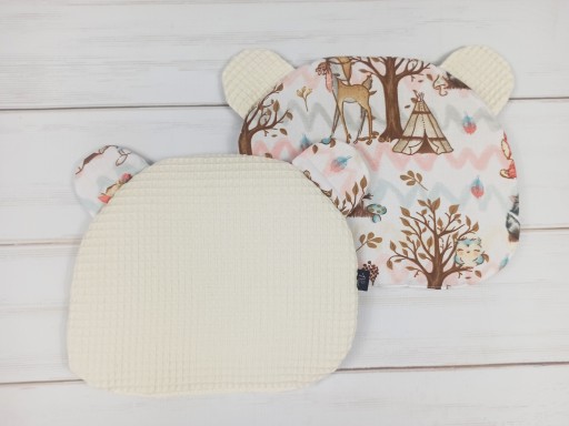 - oryginalny wygląd poduszki - zaokrąglone rogi i uszy misia