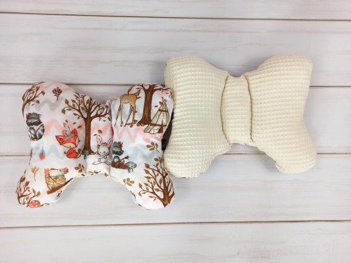 Poduszka motylek ma za zadanie zapobiegać wstrząsom główki dziecka podczas podróży w wózku lub foteliku.