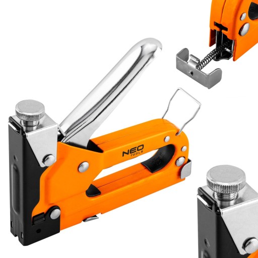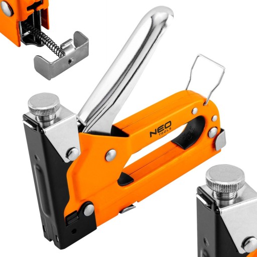Zszywacz tapicerski wielofunkcyjny 3w1, 4-14 mm, stalowy, zszywki G, L, E, 16-031, NEO to poręczne urządzenie o dużym zakresie regulacji, służące do łączenia materiałów za pomocą różnego rodzaju zszywek. Zszywacz jest niezastąpiony w warsztacie tapicerskim, jak i podczas samodzielnej renowacji mebli. Pozwala na skuteczne łączenie drewna, wykładzin, dywanów, tekstyliów, płyt pilśniowych i innych materiałów.