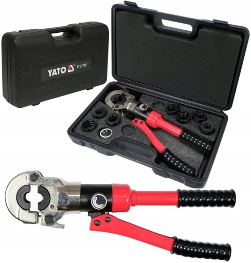 - Zawartość zestawu: praska, matryca zapasowa typ U x4 (16 mm, 20 mm, 25 mm, 32 mm), matryca zapasowa typ TH x4 (16 mm, 20 mm, 26 mm, 32 mm)