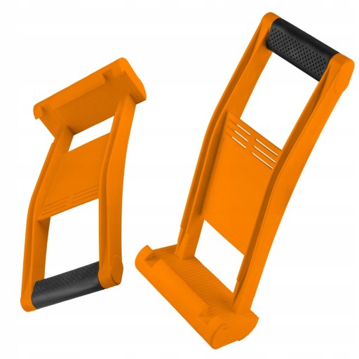 Uchwyt do przenoszenia płyt G/K, wykonany z tworzywa 50-400 NEO to praktyczny element ułatwiający transportowanie płyt gipsowo-kartonowych z jednego miejsca na drugie. Uchwyt wykonany jest z lekkiego oraz odpornego na uderzenia tworzywa ABS. Jego zadaniem jest wygodne przenoszenie płyt budowlanych oraz pozostałych, płaskich elementów gabarytowych. Jego konstrukcja zapewnia lekkiego odchylenie od materiału, aby chronić dłonie. To narzędzie specjalne zaprojektowane, aby transport z jego pomocą był bezpieczny i sprawny. Maksymalne obciążenie to 80 kg. Antypoślizgowa, gumowana rękojeść zapewnia dodatkowo pewny chwyt.