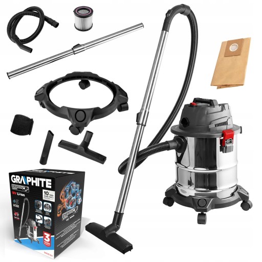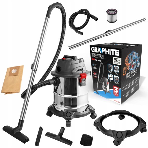 Odkurzacz warsztatowy Energy+ 18 V na mokro i na sucho, zbiornik 20 l, 58GE124 marki GRAPHITE to urządzenie do pracy na sucho oraz mokro, wyposażone w funkcję dmuchawy.