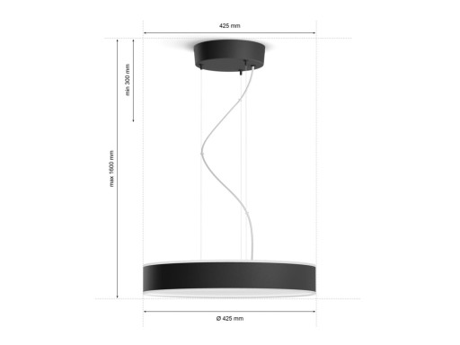 Philips Hue White ambiance Lampa wisząca Enrave. Model: Inteligentne światło zawieszenia, Kolor produktu: Czarny, Standardowe rozwiązania komunikacyjne: Bluetooth. Klasa wydajności energetycznej: F, Napięcie żarówki: LED, Napięcie wejściowe AC: 50–60 Hz. Szerokość produktu: 425 mm, Głębokość produktu: 425 mm, Wysokość produktu: 129 mm. Ilość na paczkę: 1 szt.