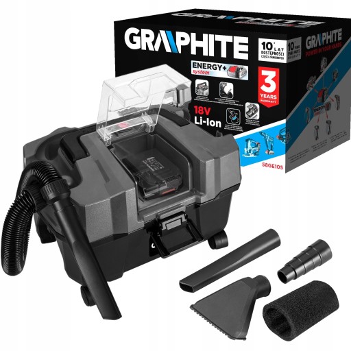 Odkurzacz akumulatorowy to kompaktowe urządzenie pracujące na akumulatorach Graphite Energy + 2 i 4 Ah. Doskonale sprawdzi się do sprzątania warsztatu lub samochodu. Przeznaczony jest do pracy na sucho i mokro. Wyposażony jest wodoodporny filtr gąbkowy oraz wysoko skuteczny filtr HEPA. Posiada także funkcje dmuchawy do szybkiego osuszania powierzchni np. tapicerki samochodowej. Posiada łatwo dostępne mocowania na akcesoria : wąż, ssawki. Transport i przenoszenie ułatwia wysuwana, szeroka rączka i 4 kółka transportowe.