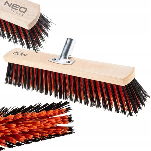 Szczotka ulicowa 40 cm z uchwytem metalowym NEO (nr ref. 39-201) to profesjonalna szczotka, która wytrzyma wiele sezonów. Przeznaczona jest do utrzymywania porządku na ulicach, podjazdach, chodnikach oraz większych powierzchniach na zewnątrz oraz wewnątrz budynków. Wykonana z drewna bukowego o wzmocnionej konstrukcji. Metalowy uchwyt o grubości 2 mm do mocowania trzonka zapewni stabilność chwytu. Gęste oraz długie włosie z materiału PET/PCV sprawia, że przy mniejszym wysiłku możemy dokładniej zamieść sprzątaną powierzchnię. Występują w wariantach od 30 do 80 cm szerokości. Parametry techniczne: szerokość: 40 cm, ilość nici w otworze 22-24, długość włosia 75 mm, średnica włosia 0.8 - 0.9 mm.