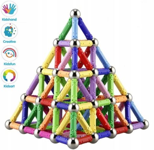 KLOCKI MAGNETYCZNE pozwalają na kreatywną zabawę poprzez tworzenie własnych budowli. Dzięki mocnym magnesom elementy łatwo łączą się ze sobą bez problemu utrzymując stworzone przez dzieci budowle. Duża liczba elementów daje nieograniczoną możliwość tworzenia różnorodnych budowli. Działanie klocków oparte jest na zasadach pola magnetycznego. Zabawa świetnie wpływa na koncentrację, zdolności manualne czy koordynację ruchową.