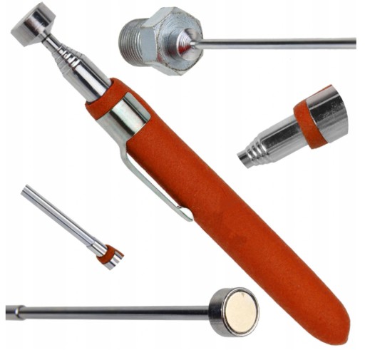 Wygodnie, za pomocą rozsuwanego teleskopowo uchwytu do aż 62cm i 13mm magnesu o udźwigu do 2,25kg na końcu rozwiążesz problem w kilka chwil! To takie proste! ;)