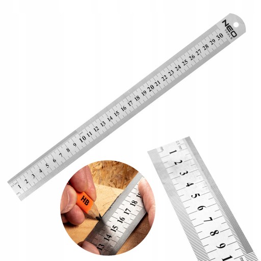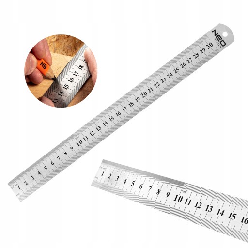 Przymiar liniowy 30 cm, stal nierdzewna 72-213 NEO to praktyczne narzędzie, niezbędne w każdym warsztacie. Wykonane z wysokiej jakości stali nierdzewnej o długości 30 cm. Linijka jest podstawowym przyrządem do pomiaru długości, wykorzystywanym często na budowie. Charakteryzuje się wysoką trwałością oraz nie zajmuje dużo miejsca. Znajdujący się na jednym z końców otwór, umożliwia zawieszenie jej na tablicy warsztatowej, aby była dostępna pod ręką. Przymiar przydatny jest w pracy oraz zadaniach stolarza, ślusarza oraz majsterkowicza.
