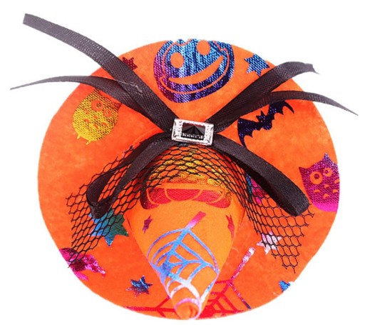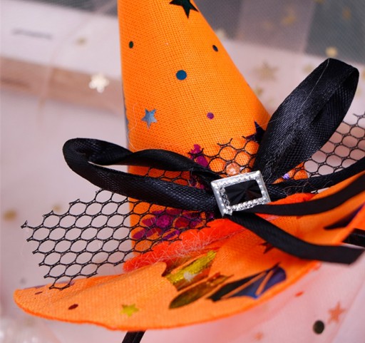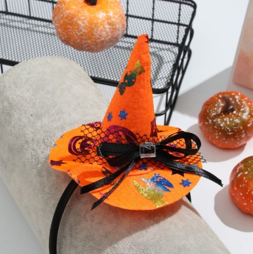 ✅ Opaska: tematyczna, holograficzna, mieniąca się, z pomarańczowym kapelusikiem w dynie, cukierki, rozmiar uniwersalny.