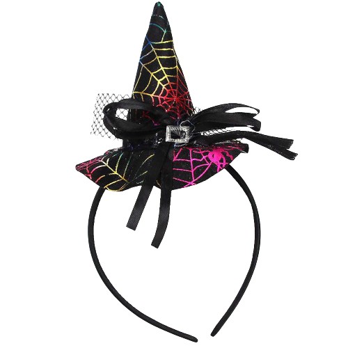 ✅ Opaska czarna: tematyczna, holograficzna, mieniąca się, z czarnym kapelusikiem w pajęczyny, rozmiar uniwersalny.
