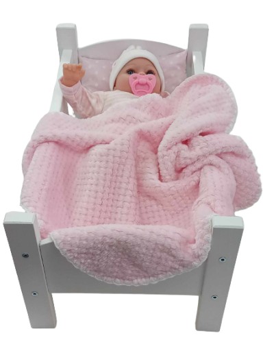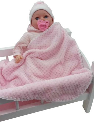 Delikatny kocyk sprawdzi się doskonale jako okrycie dla laleczki podczas codziennej zabawy. Kocyk wykonany został z miękkiego materiału - wzór tzw "ananas". Doskonale sprawdzi się zarówno w łóżeczku jak i w wózku dla lalek.