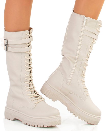 BOTKI GLANY BEŻOWE WYSOKIE KOZAKI PLATFORMA 36