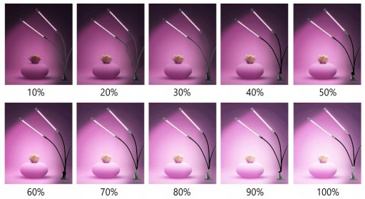 - BEZPROBLEMOWE USTAWIENIE NACHYLENIA I UŻYTKOWANIE - ta lampa do uprawy LED wspomaga wzrost, pączkowanie i kwitnienie roślin. Długość fali, którą emituje, może zostać w pełni zaabsorbowana przez rośliny do fotosyntezy. Przypnij lampę w wybranym miejscu i podłącz do portu USB. Naciśnij przełącznik, aby włączyć, a wydostanie się mieszanka czerwonego i niebieskiego światła. Włącznik posiada funkcje świecenia czasowego, zmiany światła, a także mocy świecenia. Dodatkowo możesz wyregulować metalowe pałąki paneli do pożądanego kąta, aby zwiększyć wydajność oświetlenia.