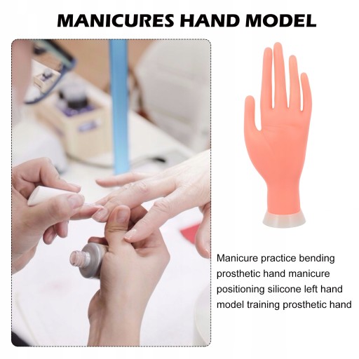 Praktyczny model dłoni do manicure można bezpośrednio ćwiczyć na nim. Jest wykonany z materiału i bezpieczny w użyciu. Ten model dłoni doskonale nadaje się do ćwiczenia zdobienia paznokci i projektowania zdobienia paznokci. Symulując ludzką dłoń, może nawet swobodnie wkładać gwoździe, dzięki czemu można na niej wielokrotnie ćwiczyć.