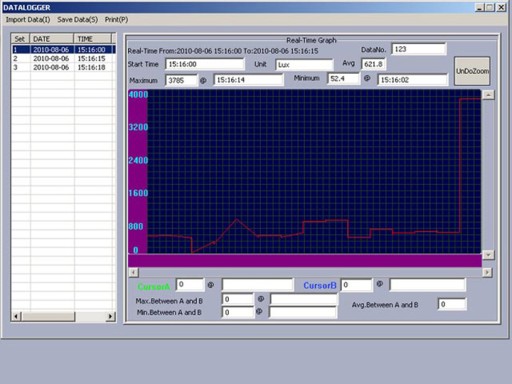 Miernik posiada interfejs USB umożliwiający podłączenie miernika do komputera i dzięki dołączonej aplikacji można wyniki pomiarów oglądać na ekranie komputera, zobrazować na wykresach oraz zapisać na pliku. Aplikacja współpracuje z systemem operacyjnym Windows XP/Vista/7/8/10.