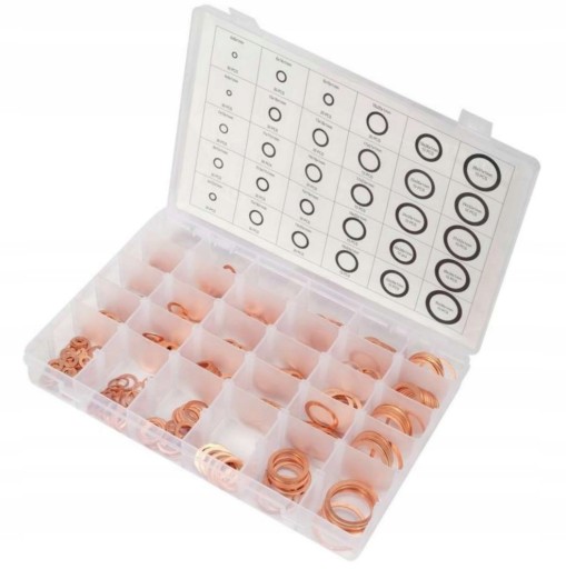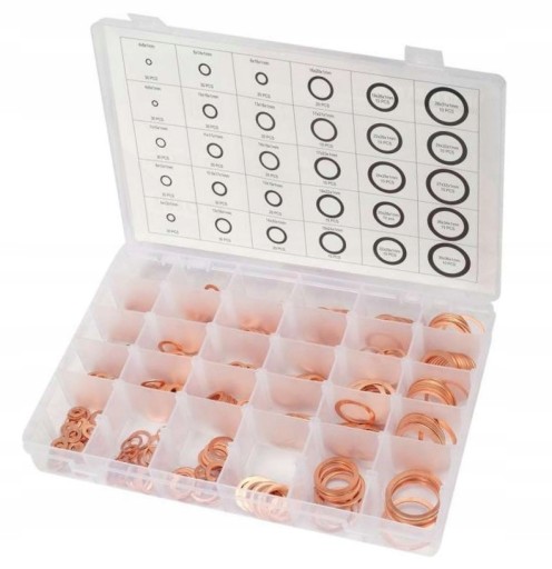 Zestaw zawierający 580 szt. podkładek miedzianych w różnych rozmiarach: