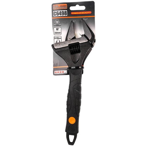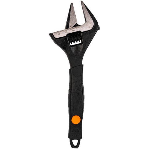 - Klucz nastawny z poszerzonym zakresem rozstawu szczęk (w stosunku do standardowych w tym rozmiarze).