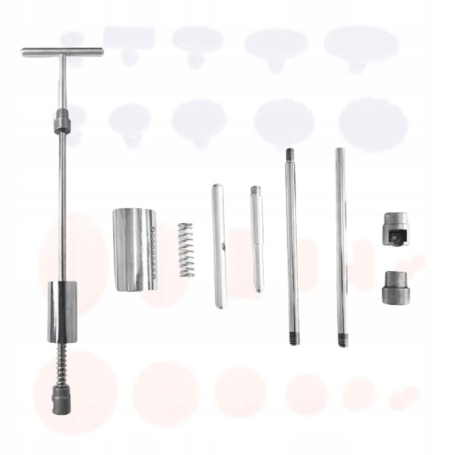 ZESTAW ZAWIERA NAJISTOTNIEJSZE ELEMENTY DO PORADZENIA SOBIE Z WGNIOTKAMI NA KAROSERII