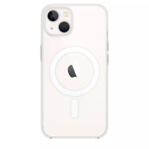 Oryginalne przezroczyste etui Apple do iPhone'a 13 mini. Wykonane z mieszanki optycznie przezroczystego poliwęglanu i elastycznych termoplastycznych poliuretanów z magnesami MagSafe z tyłu.