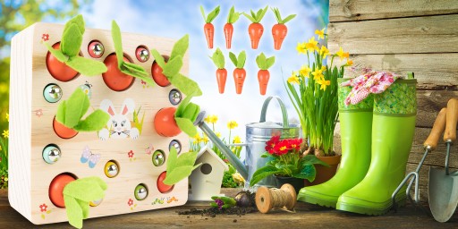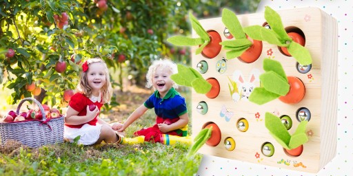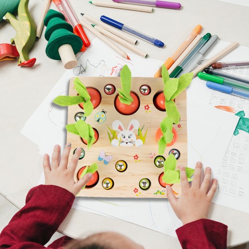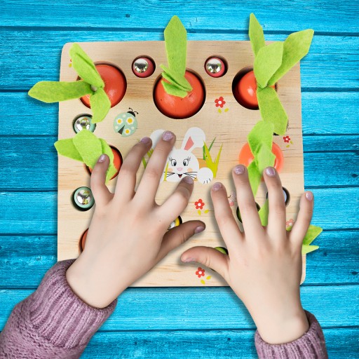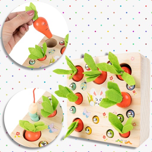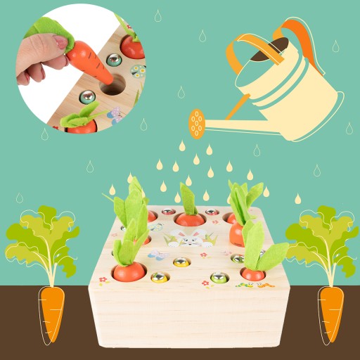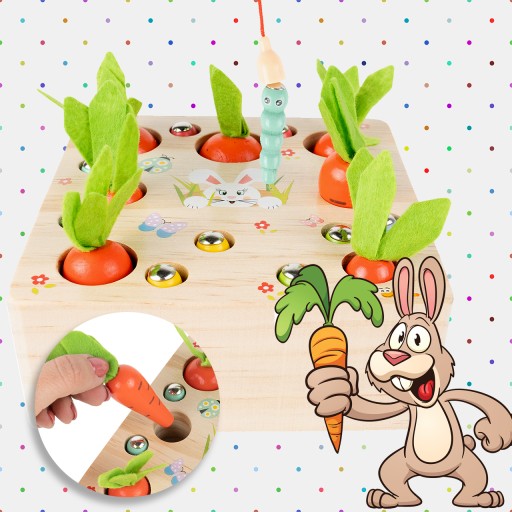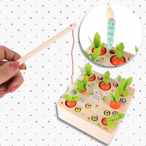 GRA ZRĘCZNOŚCIOWA DLA DZIECI DZIECKA DREWNIANA DOPASUJ MARCHEWKĘ