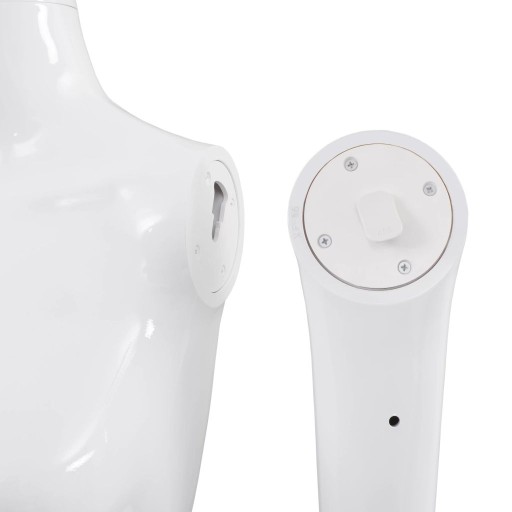 Manekin składa się z 5 części: głowy, tułowia, nóg, lewego ramienia i prawego ramienia. Głowę i ramiona można obracać o 360°, co umożliwia ustawienie manekina w różnych pozycjach. Całe ciało wykonane jest z lekkiego i wytrzymałego polipropylenu. Szklana podstawa z aluminiowym stojakiem zapewnia stabilność i umożliwia prezentację obuwia.