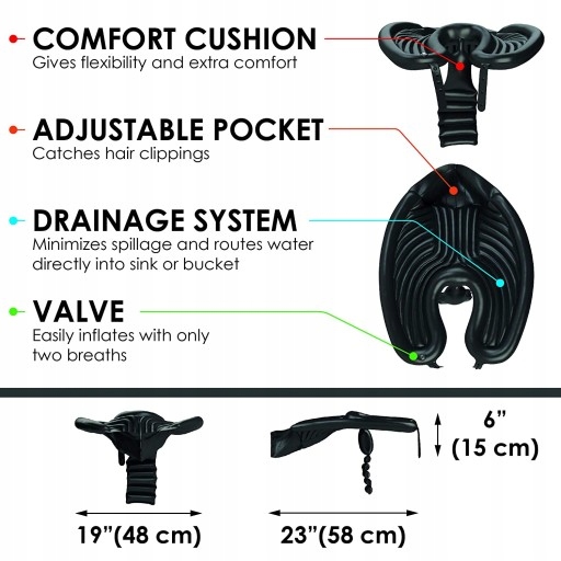 WSPANIAŁE WSPARCIE SZYI: to najwygodniejsza dostępna umywalka do szamponu. Dostosuj kontur poduszki do pożądanej pozycji szyi dla każdego użytkownika siedzącego, leżącego lub na wózku inwalidzkim.