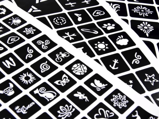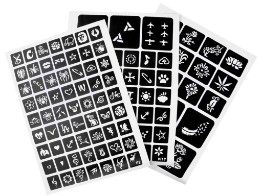 - wybierz szablon z arkusza i przyklej go na umytą i oczyszczoną skórę