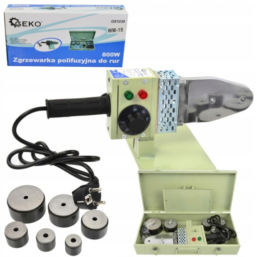 Polifuzyjna zgrzewarka do rur i kształtek z tworzyw termoplastycznych(polipropylem, polietylen itp.). Duża moc zgrzewarki 800W zapewnia szybkie nagrzewanie matryc grzewczych. Wszystkie matryce grzewcze pokryte zostały warstwą teflonu, zapewnia to wysoką jakość połączenia.