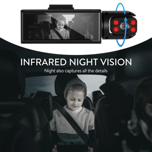 Ta kamera samochodowa jest wyposażona w dwie kamery, jedna może nagrywać przód samochodu, a druga wnętrze samochodu.