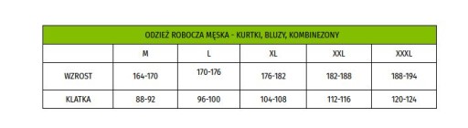 - Rozmiar 3XL, wzrost 188 - 194, klatka 120 - 124 [cm]