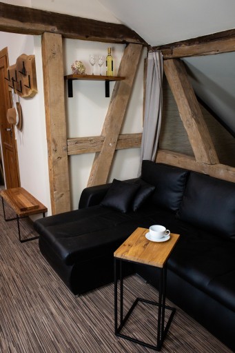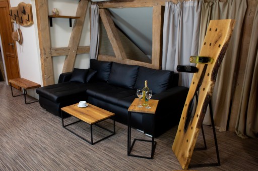Półki wykonane są z drewna dębowego w klasie RUSTICAL, tzn. że mogą występować naturalne ubytki - sęki, dziurki po szkodnikach, drobne pęknięcia. Większe ubytki wypełnione są szpachlą stolarską w kolorze ciemny dąb. Całość jest zabezpieczona naturalnym olejem lnianym.