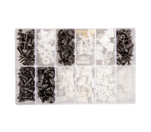 Zestaw spinek samochodowych dla Mercedes, 270 szt. NEO 11-962 Zestaw spinek samochodowych NEO 11-962 dedykowany dla marek Mercedes ułatwia ponowny montaż elementów tapicerki.