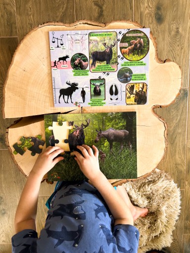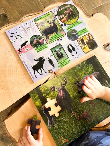 Nasza układanka to doskonały sposób na przekazywanie wiedzy dzieciom w przyjemny i angażujący sposób. Dzieci będą mogły bawić się, układając puzzle z wizerunkiem łosia, jednocześnie ucząc się o tym fascynującym zwierzęciu.