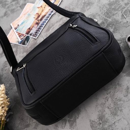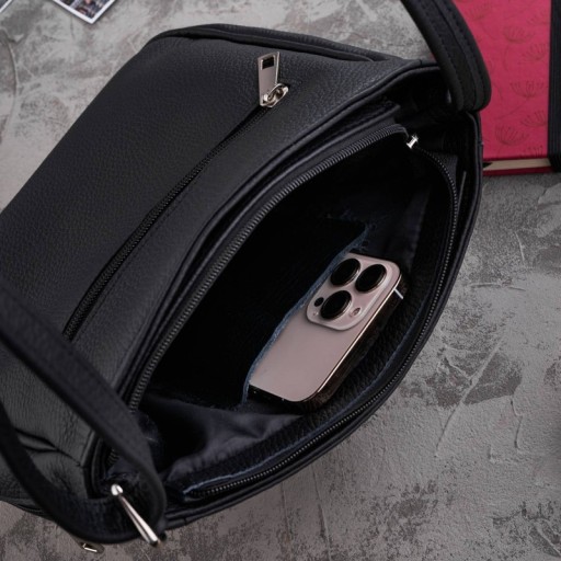STYLOWA SKÓRZANA TOREBKA DAMSKA NA RAMIĘ CZARNA