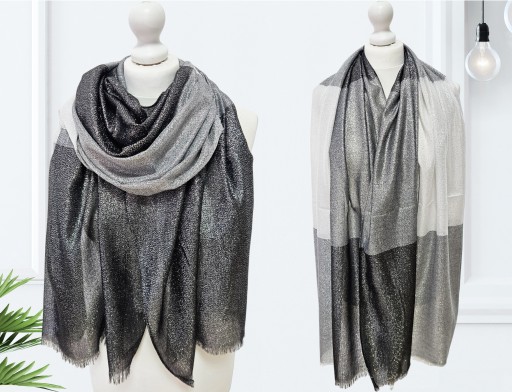 Modny, duży, przyjemny w dotyku szalik damski z oryginalnym wzorem, dwustronny, zdobiony złotą nitką, niezwykle elegancki i gustowny dodatek damskiej garderoby