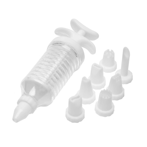 - dekorator w formie szprycy z tworzywa sztucznego, wymiary: 10 x 5 cm