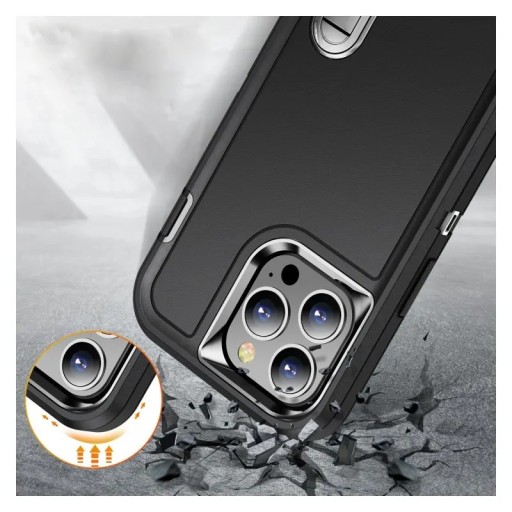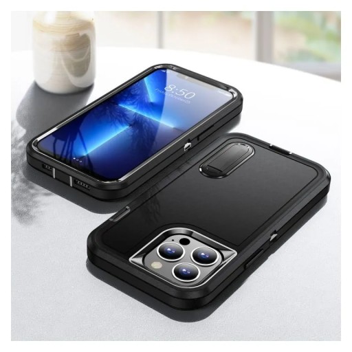 Pancerne etui wyposażone jest w pogrubione krawędzie w okolicach ekranu oraz obiektywów telefonu. Dzięki temu, ani obiektywy, ani wyświetlacz nie mają bezpośredniej styczności z powierzchnią, na której leży telefon i dzięki temu zabezpiecza powierzchnię przed zarysowaniami.