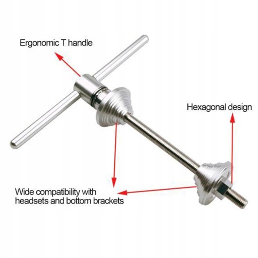 : To profesjonalne narzędzie do zestawu słuchawkowego do roweru, montażu i demontażu suportu BB Wyposażony w BB, średnica driftu od 22mm do 55mm pasuje do większości sterów i suportu z BB30 BB90 Prosty, łatwy w użyciu i skuteczny w zestawach słuchawkowych i bez problemu dopasowany BB Zacisk mechaniczny sprawdza się bardzo w przypadku wciskania wsporników dolnych i montażu puszki głowicy Podczas montażu użyj smaru, aby chronić zestaw słuchawkowy lub suport i ułatwić instalację