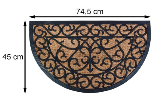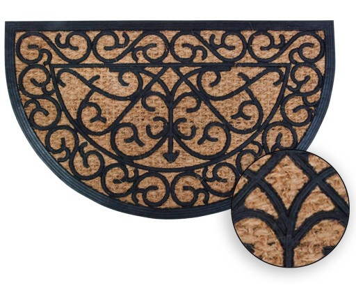 Prezentujemy piękną, półokrągłą wycieraczkę, idealną zarówno do użytku wewnątrz, jak i na zewnątrz. Nasza wycieraczka ma klasyczny wiktoriański wzór z wdzięcznymi lokami, który doda elegancji Twojemu wejściu.