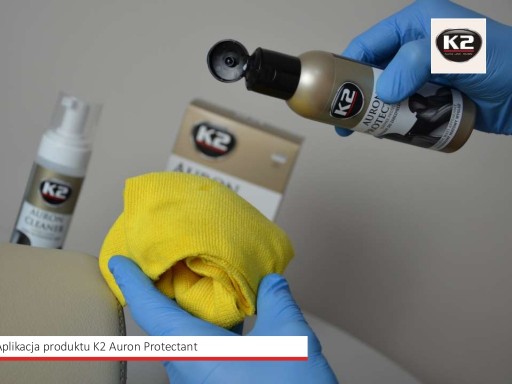 1. Wyczyszczoną i wysuszoną powierzchnię należy zaimpregnować preparatem K2 AURON PROTECTANT. W tym celu nałóż mleczko na mikrofibrę i rozprowadź cienką warstwę po powierzchni. Po skończonej aplikacji pozostaw powierzchnie do wyschnięcia na parę godzin.
