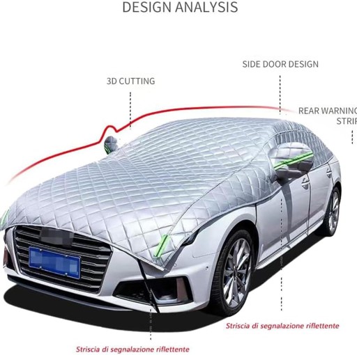 ξOdporna na uderzenia nakładka na śnieg lód ta pokrywa śnieżna samochodu wykorzystuje nakładkę ochronną która może skutecznie chronić górną część samochodu przed uszkodzeniami spowodowanymi przez śnieg lód i inne warunki pogodowe. Jest w stanie wytrzymać uderzenia do 760 kmh zapewniając bezpieczeństwo i trwałość Twojego samochodu. ξCzterowarstwowa pogrubiona konstrukcja Dzięki czterowarstwowej pogrubionej konstrukcji ta osłona przeciwśnieżna samochodu jest trwała i zapewnia bezpieczeństwo pojazdu o każdej porze roku. Zewnętrzna warstwa wykonana jest ze srebrnego materiału izolacyjnego który odbija światło słoneczne i zapobiega nagrzewaniu się natomiast wewnętrzna warstwa wykonana jest z bawełny o grubości 4 mm która chroni przed zarysowaniami i mrozem. Dzięki wodoodpornym i pyłoszczelnym właściwościom oraz optymalną ξDoskonały materiał Chroń swój samochód przed śniegiem mrozem kurzem i promieniami UV dzięki naszej osłonie przeciwśnieżnej. Wykonany z tkaniny pokrytej srebrem 190T i wodoodpornej membrany jest odporny na wszelkie zewnętrzne ograniczenia. Pokrowiec jest mocny i odporny na słońce a jego wewnętrzna część zawiera bawełnę i białą tkaninę 170T która zapobiega uszkodzeniom lakieru samochodowego. ξFunkcja u201ewszystko w 1u201d nasza osłona przeciwśnieżna do samochodu działa nie tylko jako ochrona przed śniegiem lodem mrozem i kurzem ale jej zewnętrzna część jest również wyposażona w odblaskową taśmę ostrzegawczą która zwiększa bezpieczeństwo i widoczność samochodu. Możesz cieszyć się łatwym montażem i demontażem oraz praktycznymi funkcjami dołączonymi do produktu które zapewniają idealną ochronę samochodu. ξRóżne rozmiary Nasza osłona przeciwśnieżna do samochodu jest dopasowana do konkretnego modelu pojazdu. Nieważne czy masz sedana hatchbacka czy SUVa mamy odpowiedni rozmiar który spełni Twoje potrzeby. Zapewnij optymalną ochronę i pokrycie dzięki naszej specjalnie dopasowanej osłonie śnieżnej.