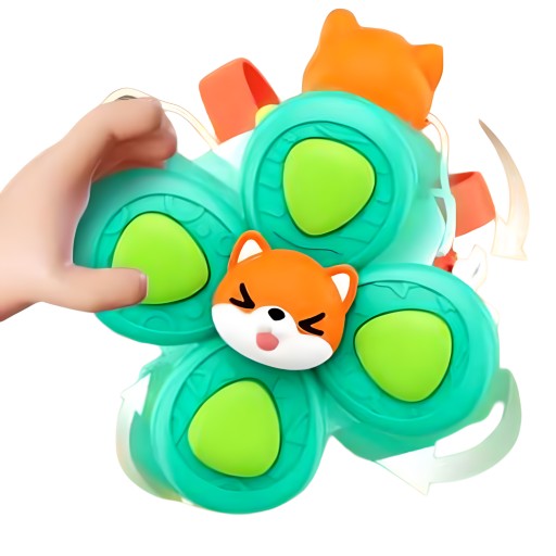Kwiatek swobodnie się kręci, a na jego płatkach znajdują się przyciski. Wskazane funkcje zabawki mają działanie regulujące emocje i pomagają w koncentracji uwagi.