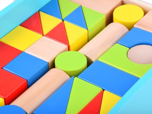 Drewniany chodzik, pchaczyk, wózeczek z kolorowymi drewnianymi dużymi klockami na pewno zapewni dużo zabawy najmłodszym pociechom, które lubią przenosić swoje rzeczy z miejsca na miejsce. Klocki zostały dostosowane do rączek najmłodszych dzieci, sprawdzą się podczas zabaw w ogrodzie, tarasie, a także na plaży. Wózek posiada gumowe obwódki na kołach, co zapewni ciche i lekkie poruszanie po podłożu. Klocki drewniane, mimo swojej prostoty, są jedną z najlepszych form zabawy dla każdego dziecka. Nie tylko dlatego, że nigdy się nie nudzą, ale także z uwagi na to, jak doskonale przyczyniają się do rozwoju naszego maluszka. Wózeczek może służyć również do wożenia laleczek, czy pluszaków na pewno dostarczy ogromnej frajdy każdemu dziecku.