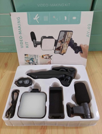 Zestaw statywu vlog ay-49 tworzenie zestawu statywu vlog z mikrofonem i światłem do transmisji na żywo.