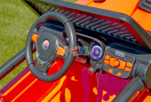 Posiada wolny start- płynne ruszanie. Jest duży, bezpieczny, Łatwy w obsłudze i bardzo mocny. Spokojnie pokonuje małe nierówności, dla najmłodszych fanów motoryzacji. Posiada wygodne siedzenia, wyposażone w pas bezpieczeństwa oraz pilot zdalnego sterowania dla rodzica, który pozwala sterować samochodem w przód i tył a także w lewo i prawo. Za pomocą pilota można również zatrzymać pojazd.