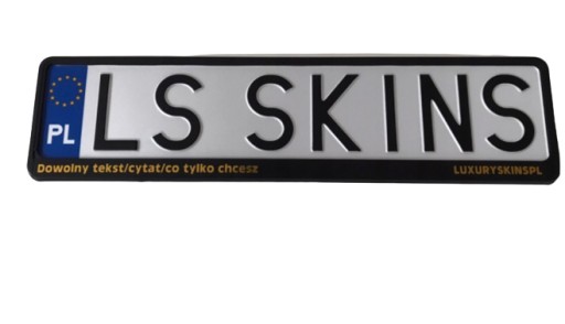 Aukcja dotyczy ramki tablicy rejestracyjnej UE koloru czarnego z własnym napisem z folii w kolorach do wyboru w ilości 2 sztuk